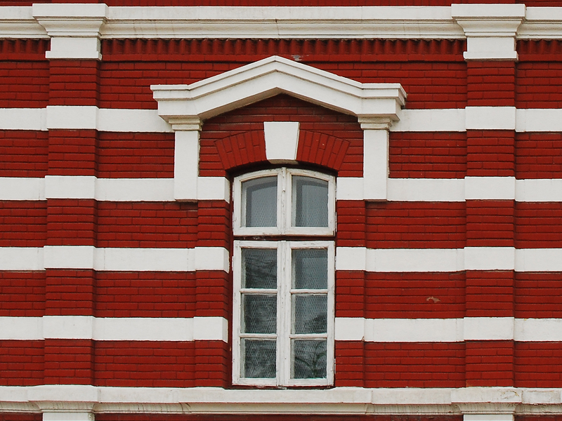 Beautiful old building with bright red bricks and white trimmings around the windows. Download this texture full size of this building face for free.